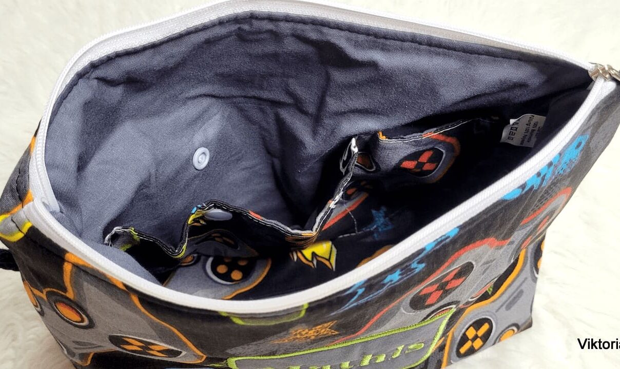 Die Kulturtasche Controller personalisiert ist eine praktische, kompakte und gleichzeitig auffällige Lösung für den Alltag mit Kind oder für unterwegs. Wenn du eine Kulturtasche Controller suchst, die nicht nur funktional ist, sondern auch optisch etwas Besonderes bietet, ist genau dieses Modell eine sehr gute Wahl. Das moderne Controller Motiv auf dunklem Hintergrund wirkt lebendig und kindgerecht, während die Personalisierung mit Namen die Tasche zu einem individuellen Einzelstück macht. Ich nähe jede Kulturtasche Controller personalisiert selbst aus hochwertigem Stoff und achte dabei auf eine saubere Verarbeitung und eine stabile Form. Gerade im Alltag ist es wichtig, dass eine Tasche nicht nur schön aussieht, sondern auch zuverlässig funktioniert. Diese Kombination steht hier im Mittelpunkt.