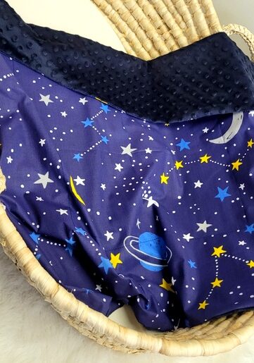 Decke zur Taufe Babydecke mit Namen Weltall , Sterne ,