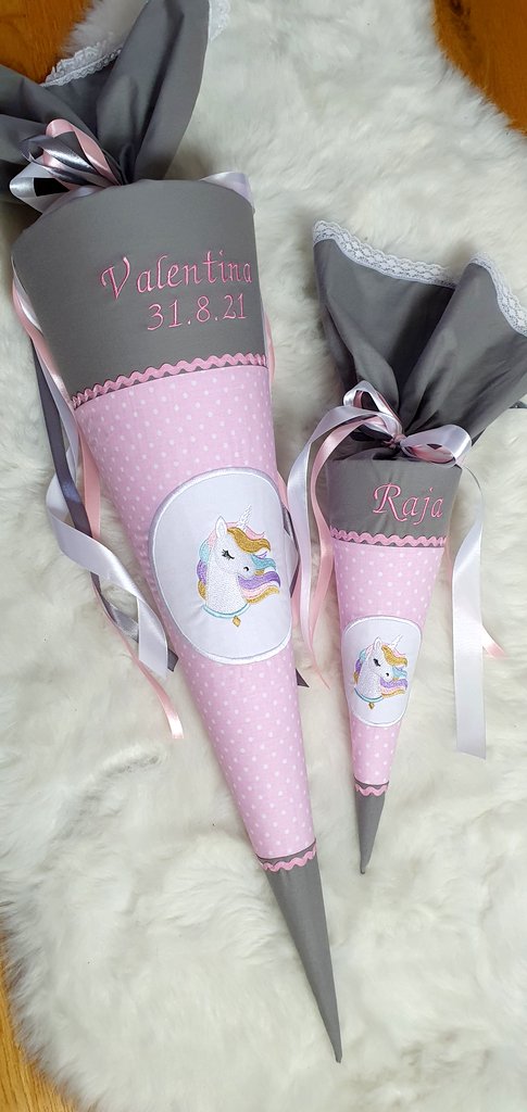 Die kleinere Variante mit etwa 35 cm wird häufig als Geschwistertüte verwendet. Wenn ein Kind eingeschult wird, möchten Geschwister oft ebenfalls eine kleine Schultüte bekommen. Eine Schultüte Einhorn in dieser Größe eignet sich dafür sehr gut.